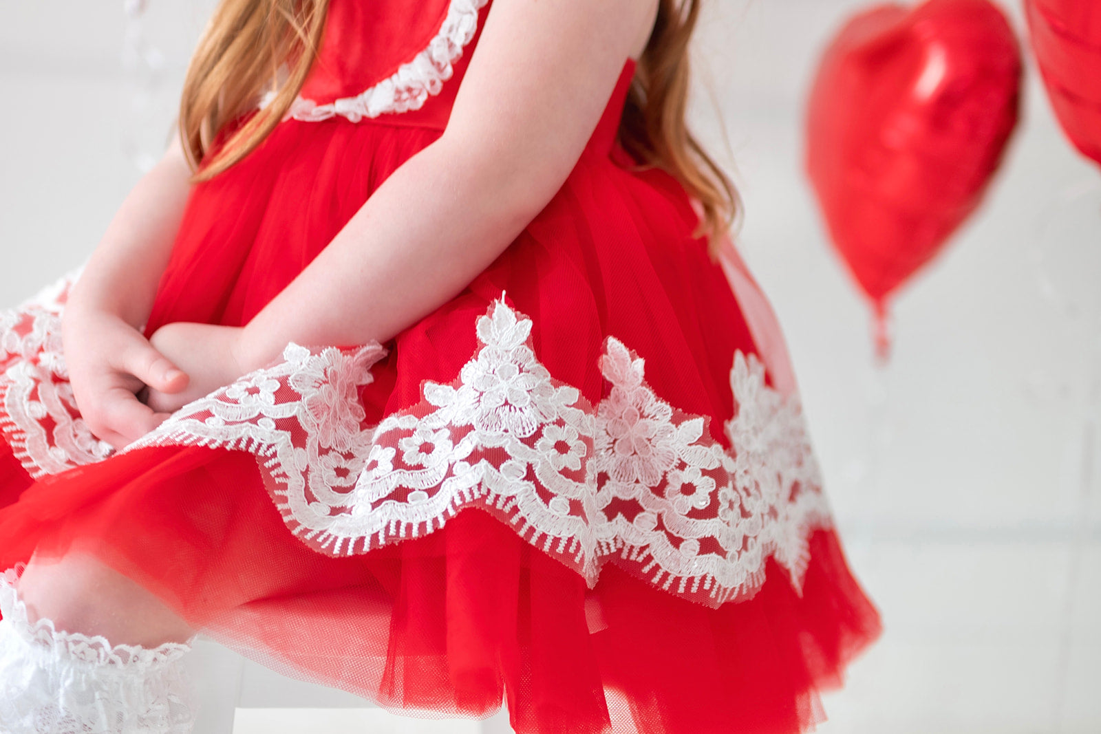 Designed with comfort in mind and layers that hold their shape, this dress twirls beautifully and feels just as magical as it looks. Perfect for classroom parties, sibling photos, Daddy Daughter dances, and Valentine celebrations.