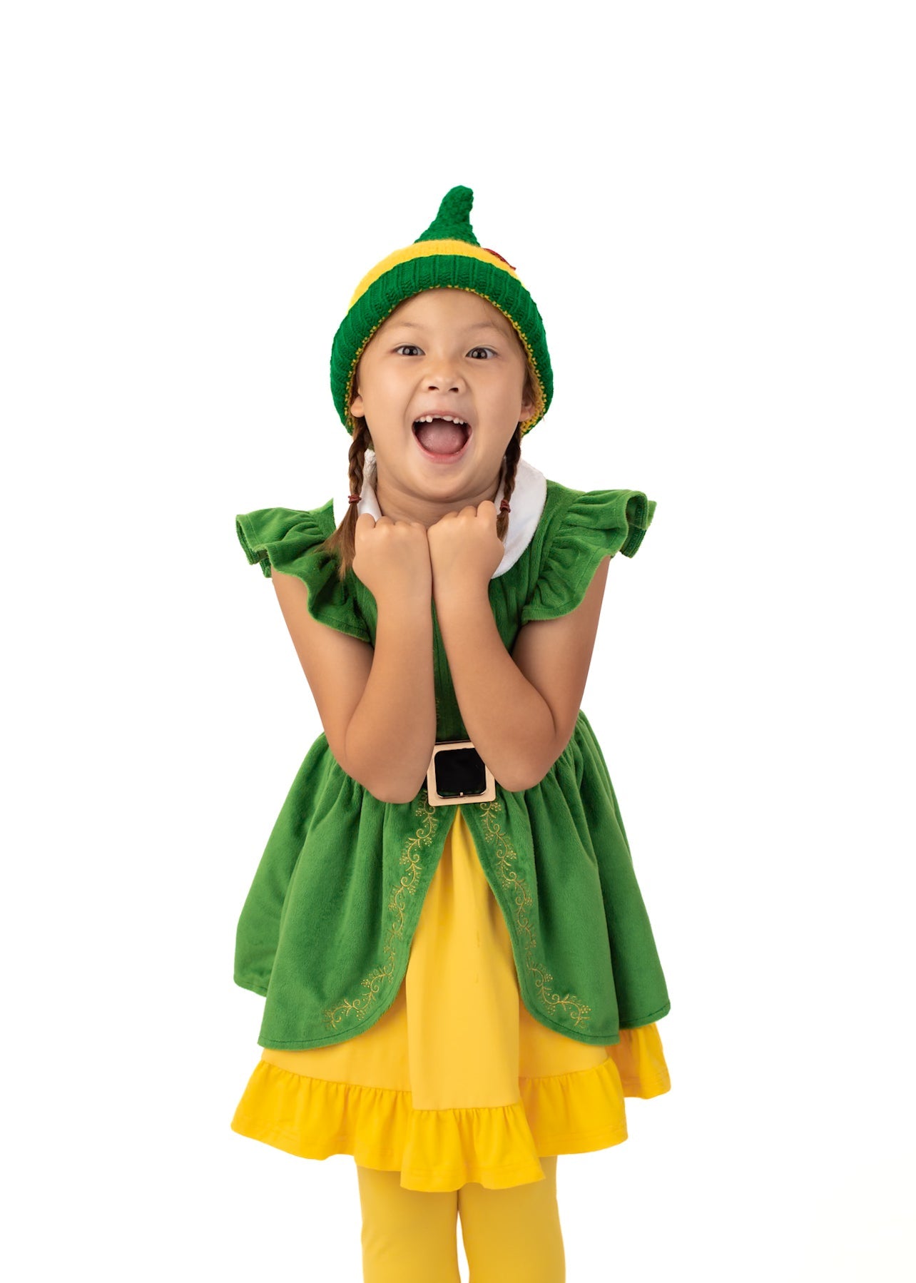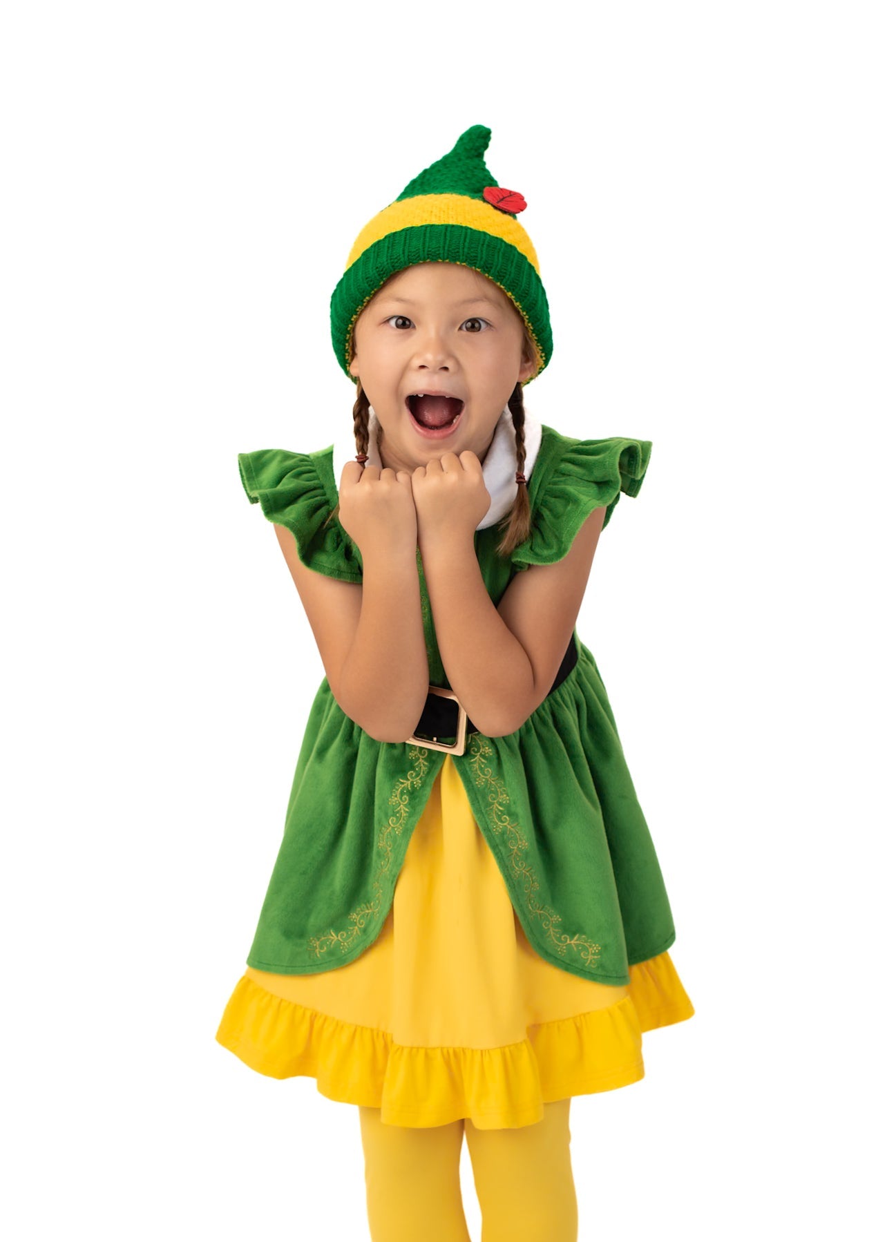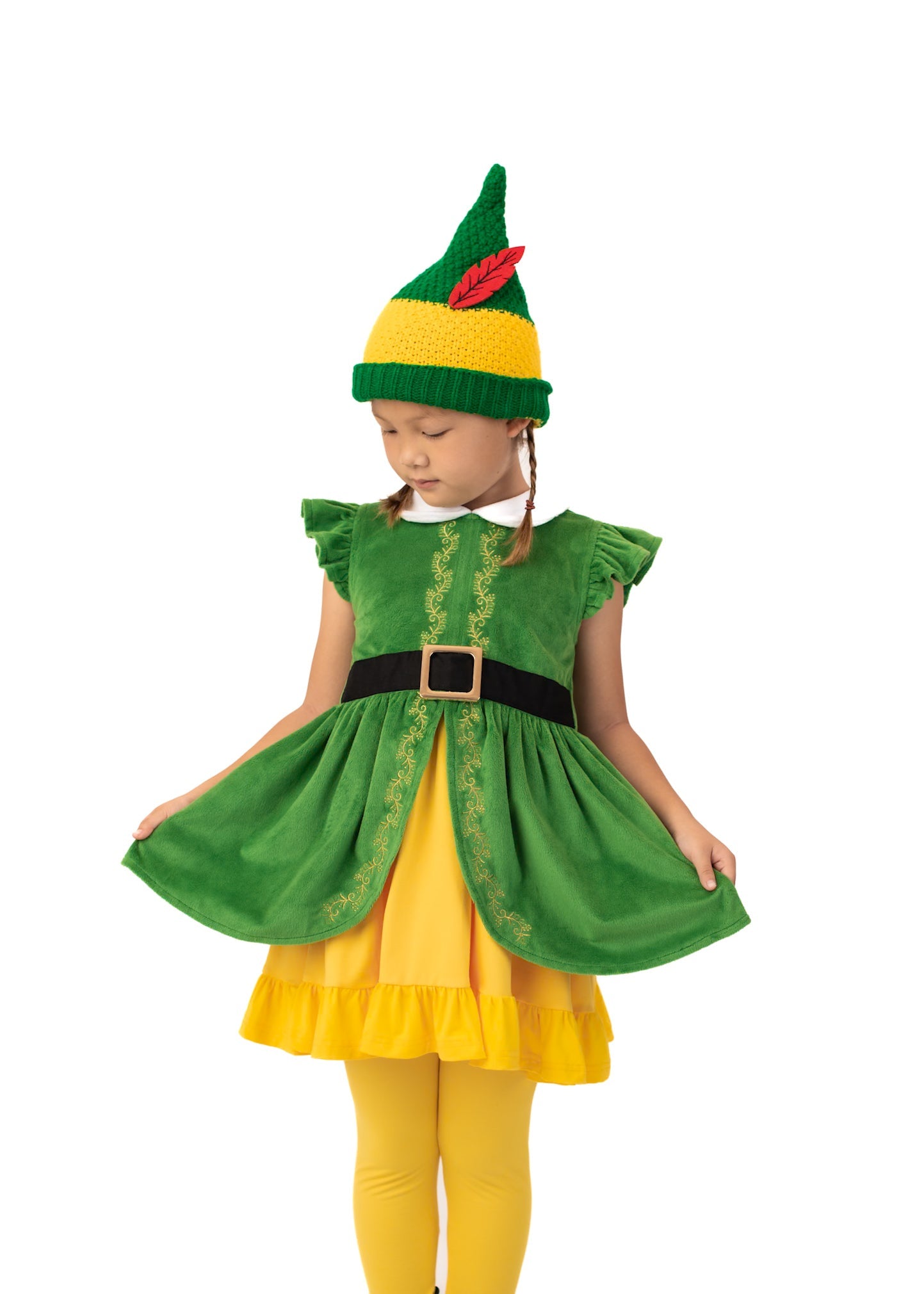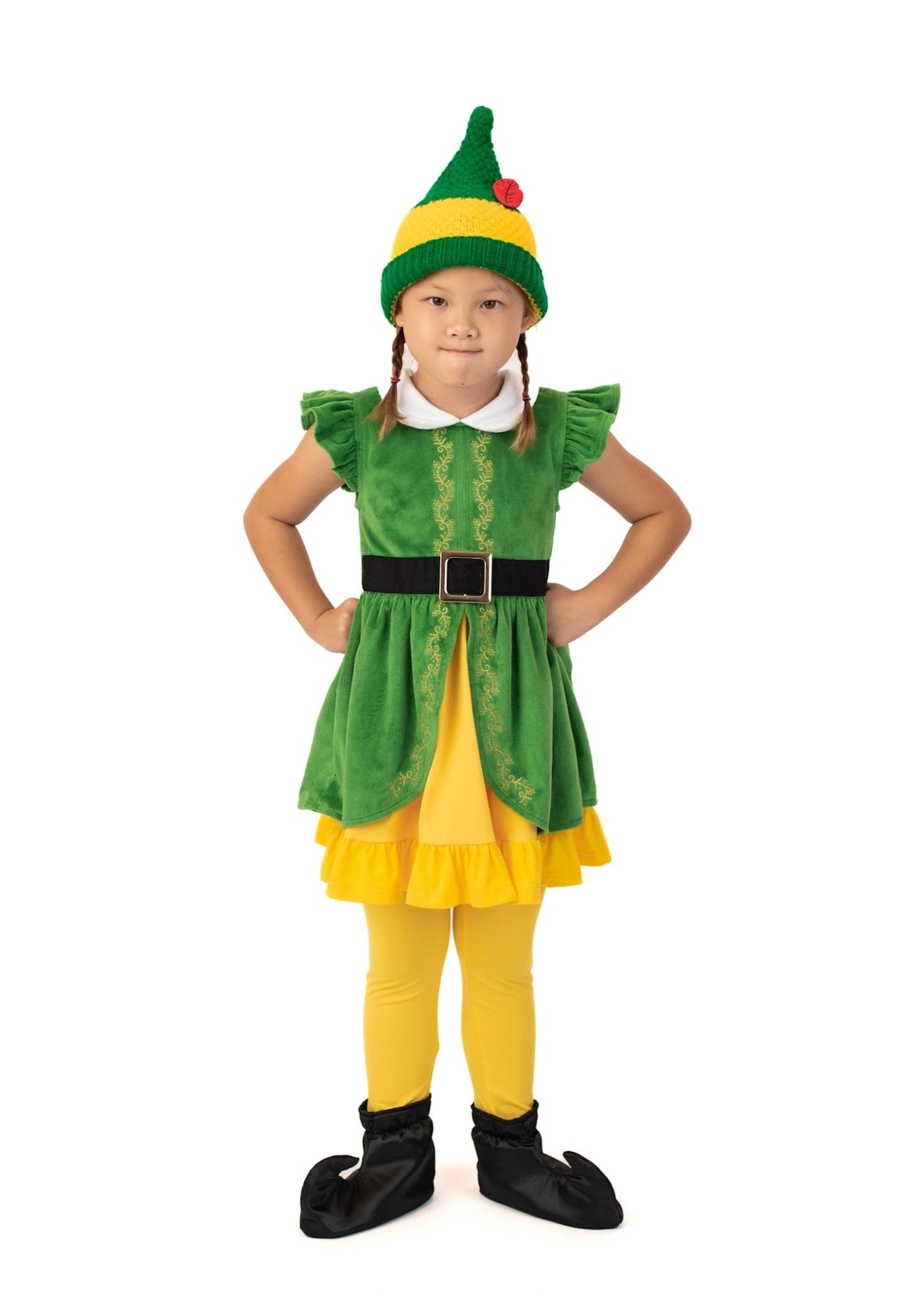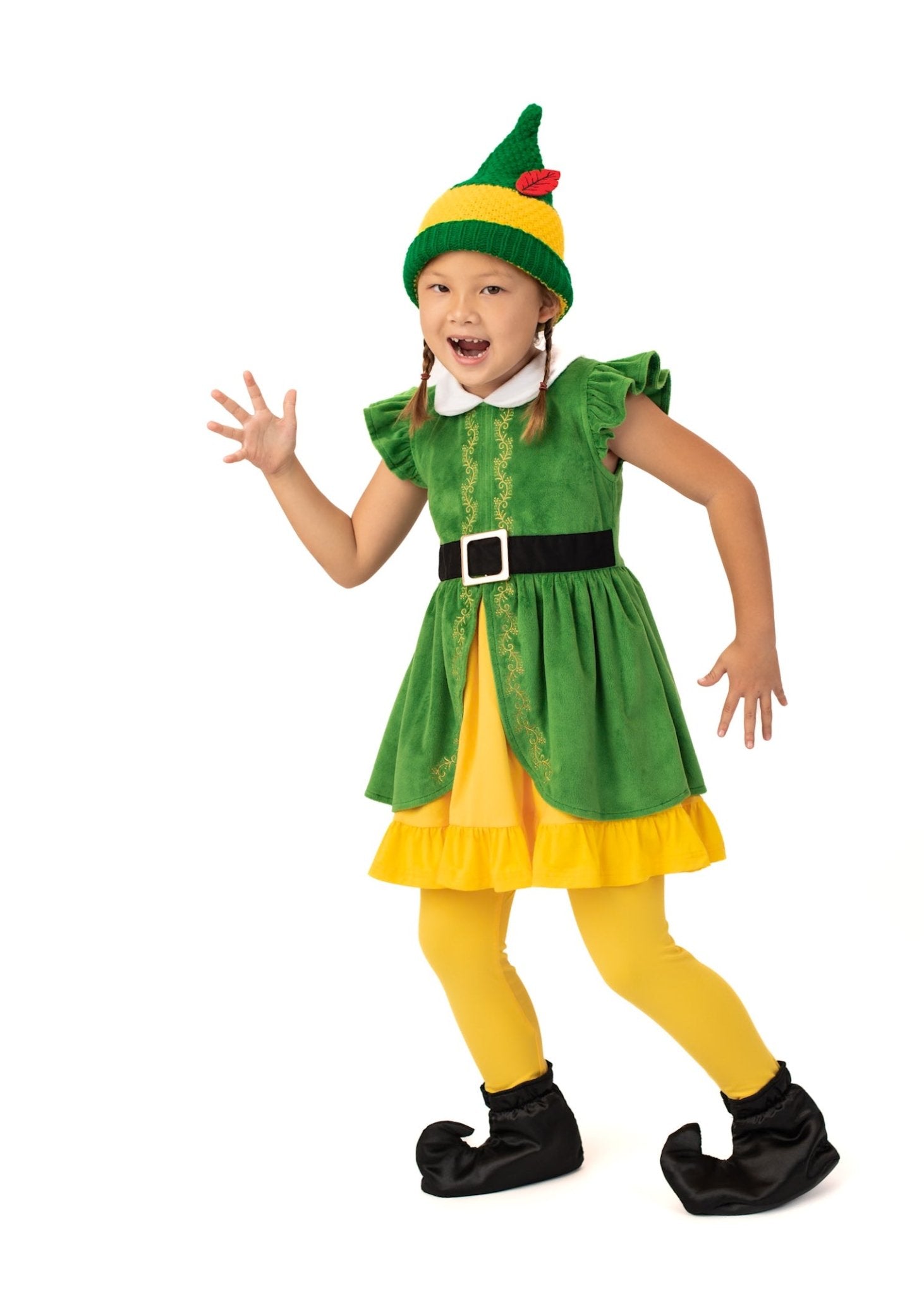 This playful green and gold design brings Buddy’s iconic look to life with boutique-level charm. Featuring festive trims, cheerful details, and that unmistakable North Pole spirit, it’s perfect for holiday parties, photos, and every merry moment in between.