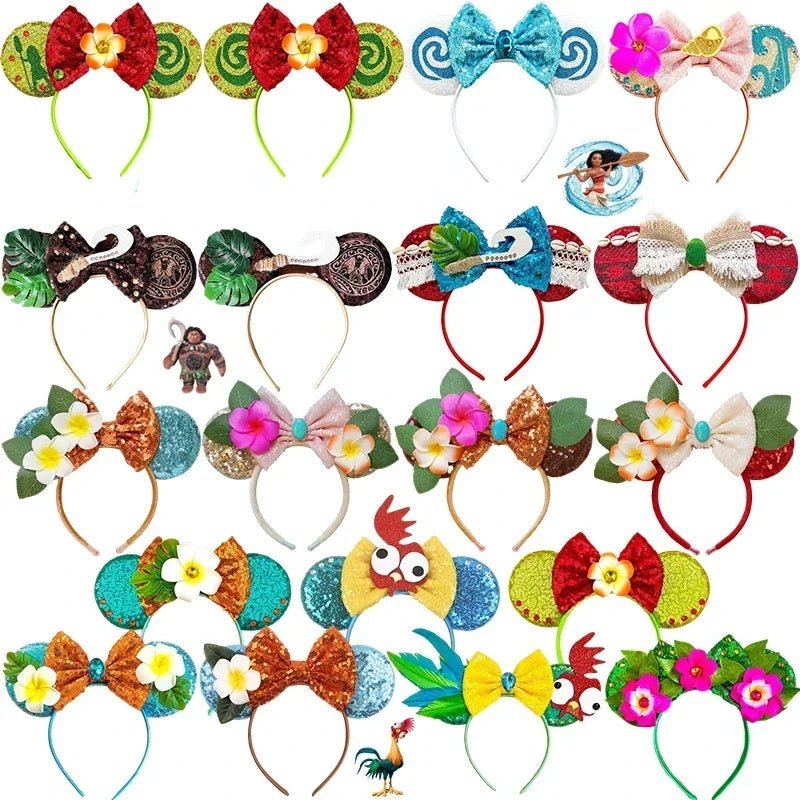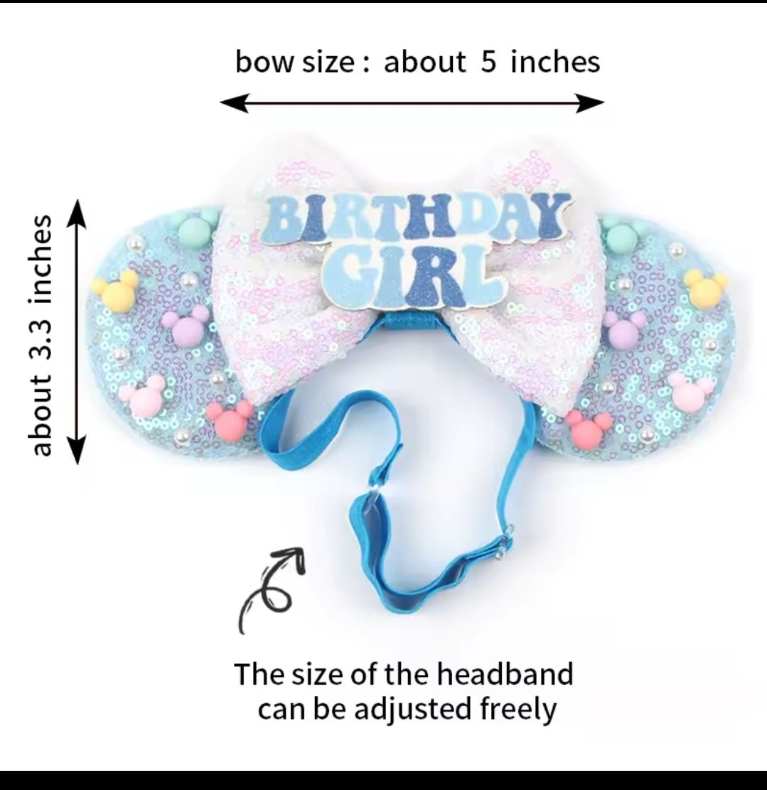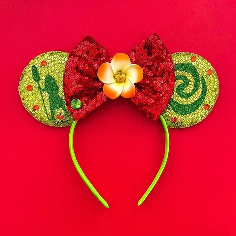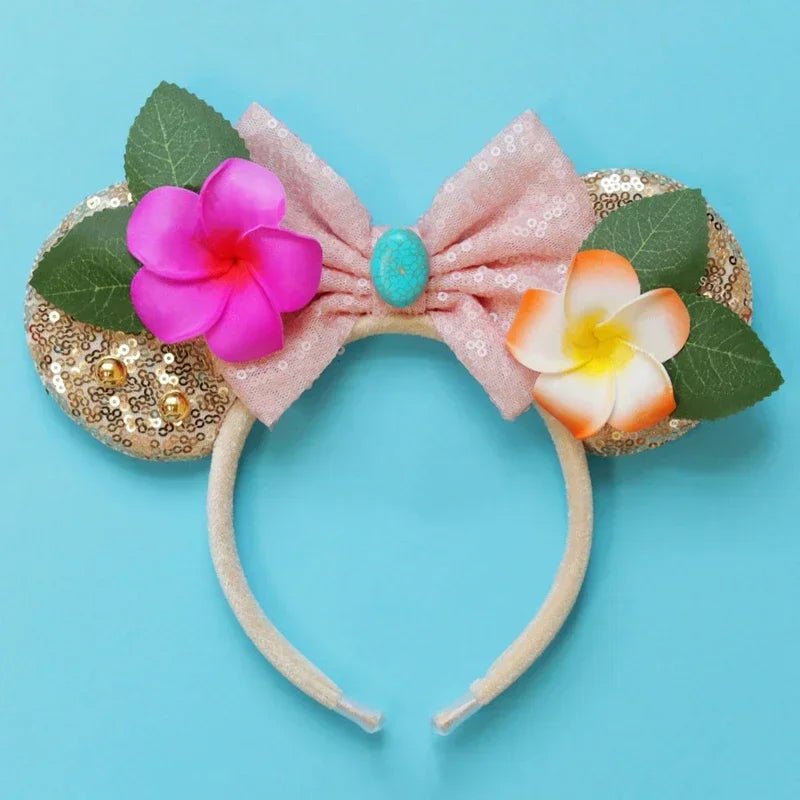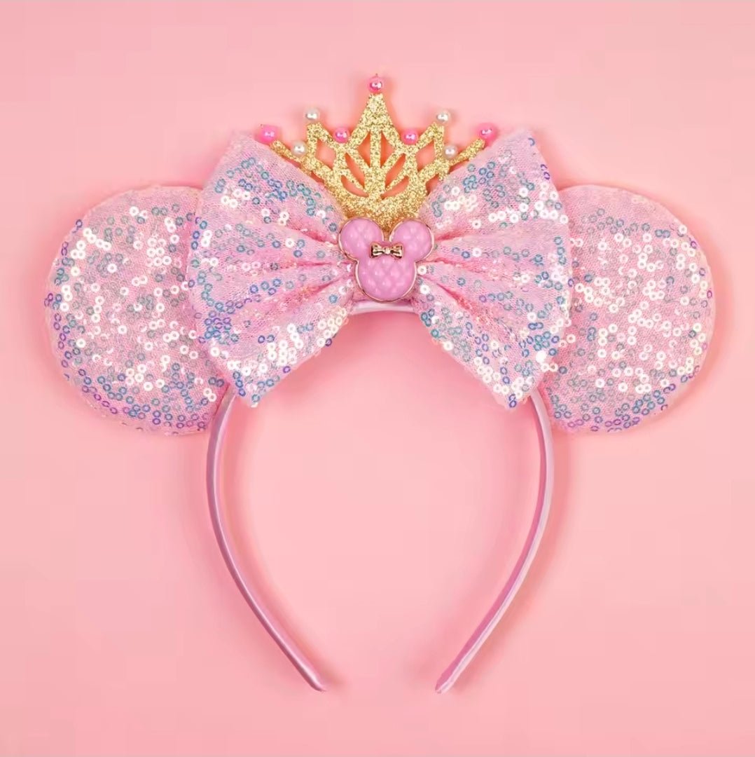 Crown Pearl Ears – Shimmering pink sequin ears with an oversized bow, topped with a glitter crown and delicate pearl accents for a royal finish