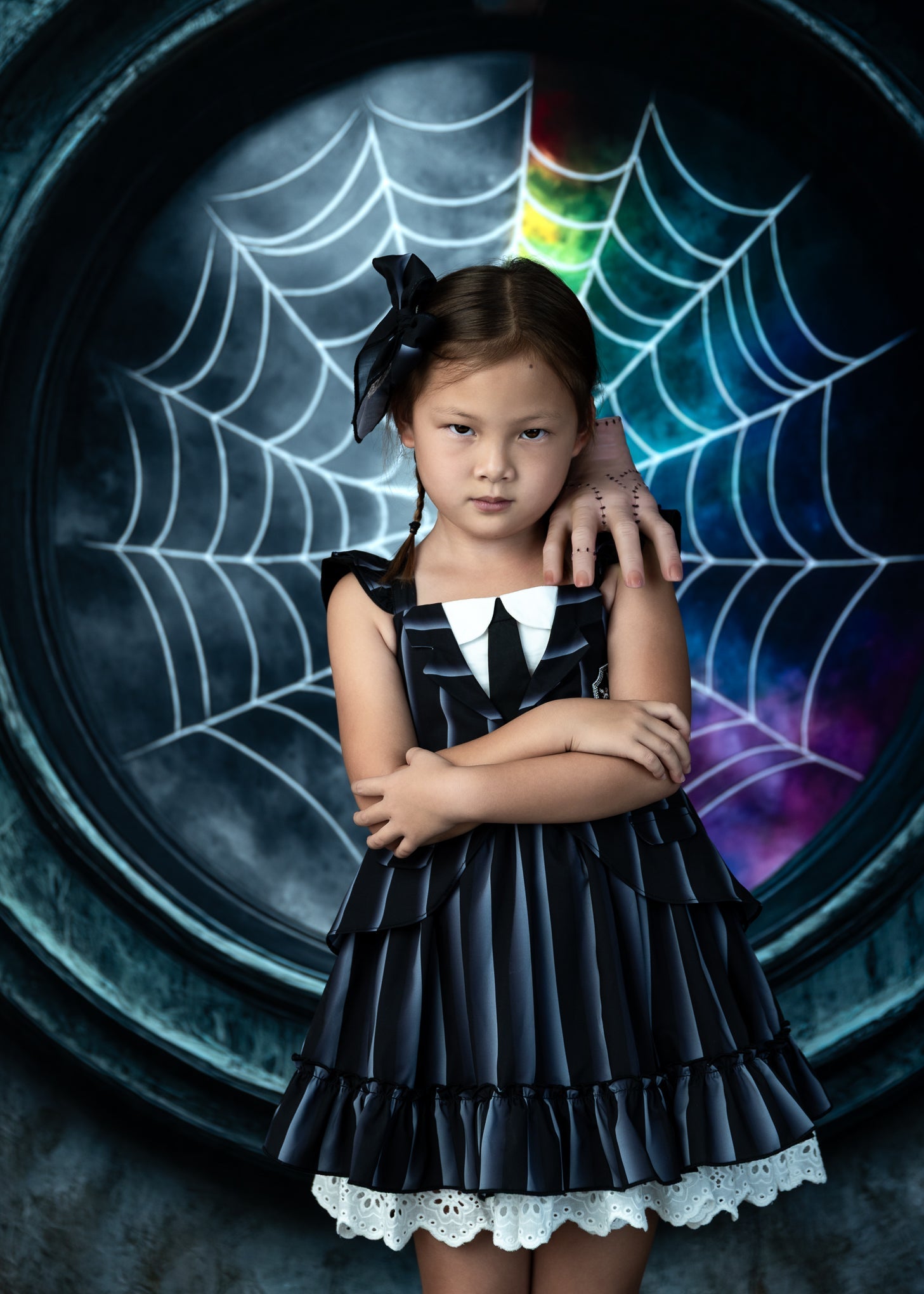Embrace the dark charm of our Child of Woe dress, inspired by gothic elegance and designed with comfort in mind. Featuring moody black ombre stripes and thoughtful details, this style is made for little outcasts who love to stand out.
