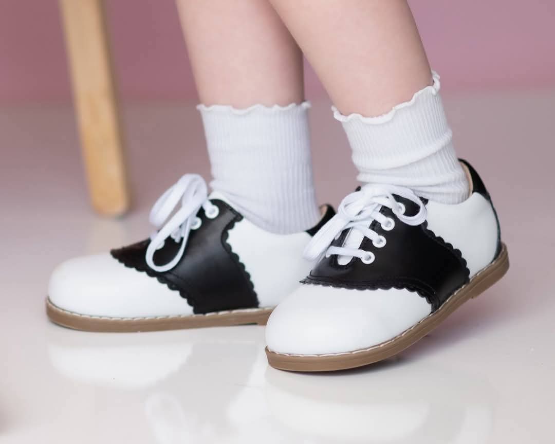 Perfect for picture days, twirling in dresses, or simply stepping out in style — these saddle shoes are a must-have staple for every little trendsetter's wardrobe.