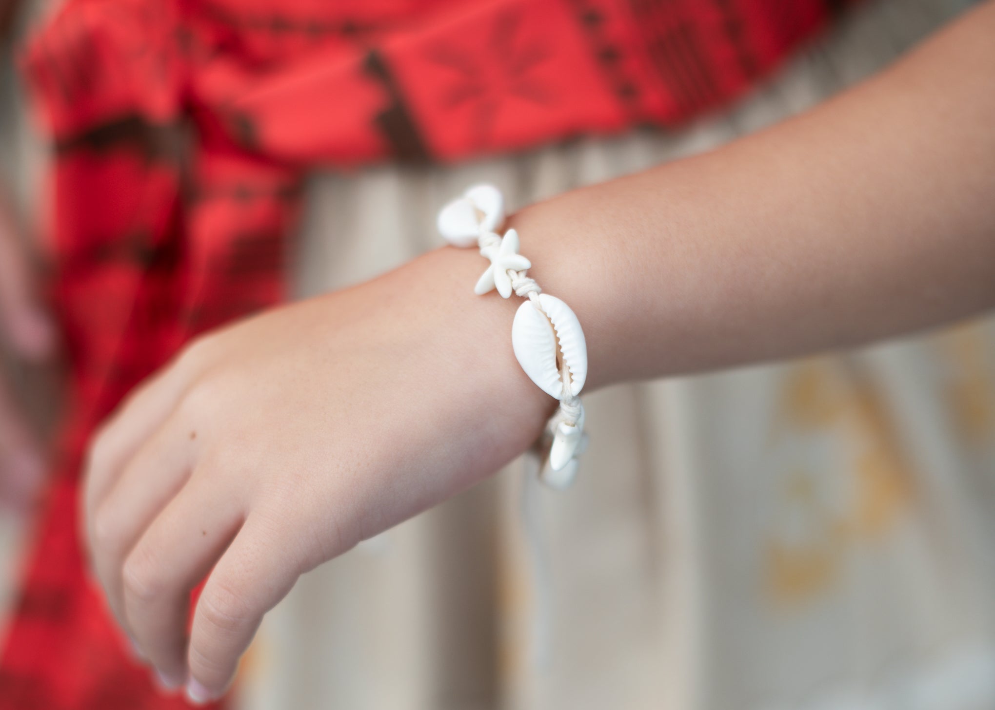 A playful coastal mix of cowrie shells and starfish-shaped beads for extra ocean-inspired detail.